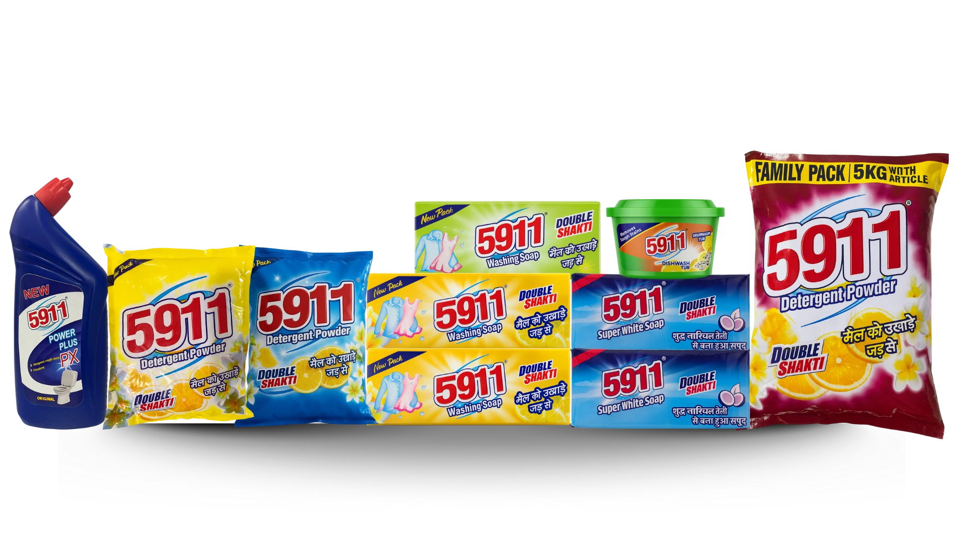 At 5911, we blend powerful cleaning performance with care and quality. From fighting stubborn stains to leaving behind a fresh lemon fragrance, our products are crafted to meet every Indian home’s daily hygiene needs. Proudly made in India, 5911 delivers Double Shakti in every wash — powerful, gentle, and affordable.